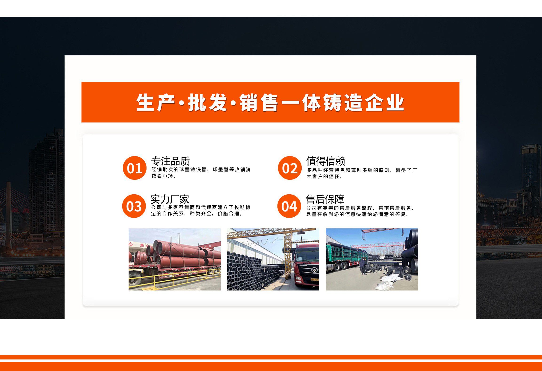 青島金源達管業(yè)有限公司主要經營各種規(guī)格球墨鑄鐵管,球墨管,球墨鑄鐵管廠家等產品,質量可靠,誠信經營,值得信賴! 青島金源達管業(yè)有限公司始終堅持“誠信立業(yè),追求卓越,合作共贏,共同發(fā)展”,竭誠歡迎各界朋友來廠參觀指導,洽談業(yè)務。我們愿與您攜手共進,互惠雙贏,共創(chuàng)未來! 公司堅持“以奮斗者為本”的理念,關心關愛職工,職工的獲得感、幸福感更加充實、更有保障、更可持續(xù);秉承“忠誠企業(yè)、勇于擔當、開拓創(chuàng)新、主動作為”,堅持黨建領航、創(chuàng)新驅動、文化塑魂、奉獻社會,全面致力于綠色、低碳、高效、高質量發(fā)展?! ≡概c各界朋友攜手并進,共創(chuàng)未來!...